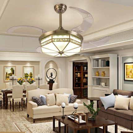 #1954 42″ Blissbells Retractable Celing Fan, Crystal, 3 Color Setting Chandelier, DC 30W Motor, 36W*2 LED, AC 110V